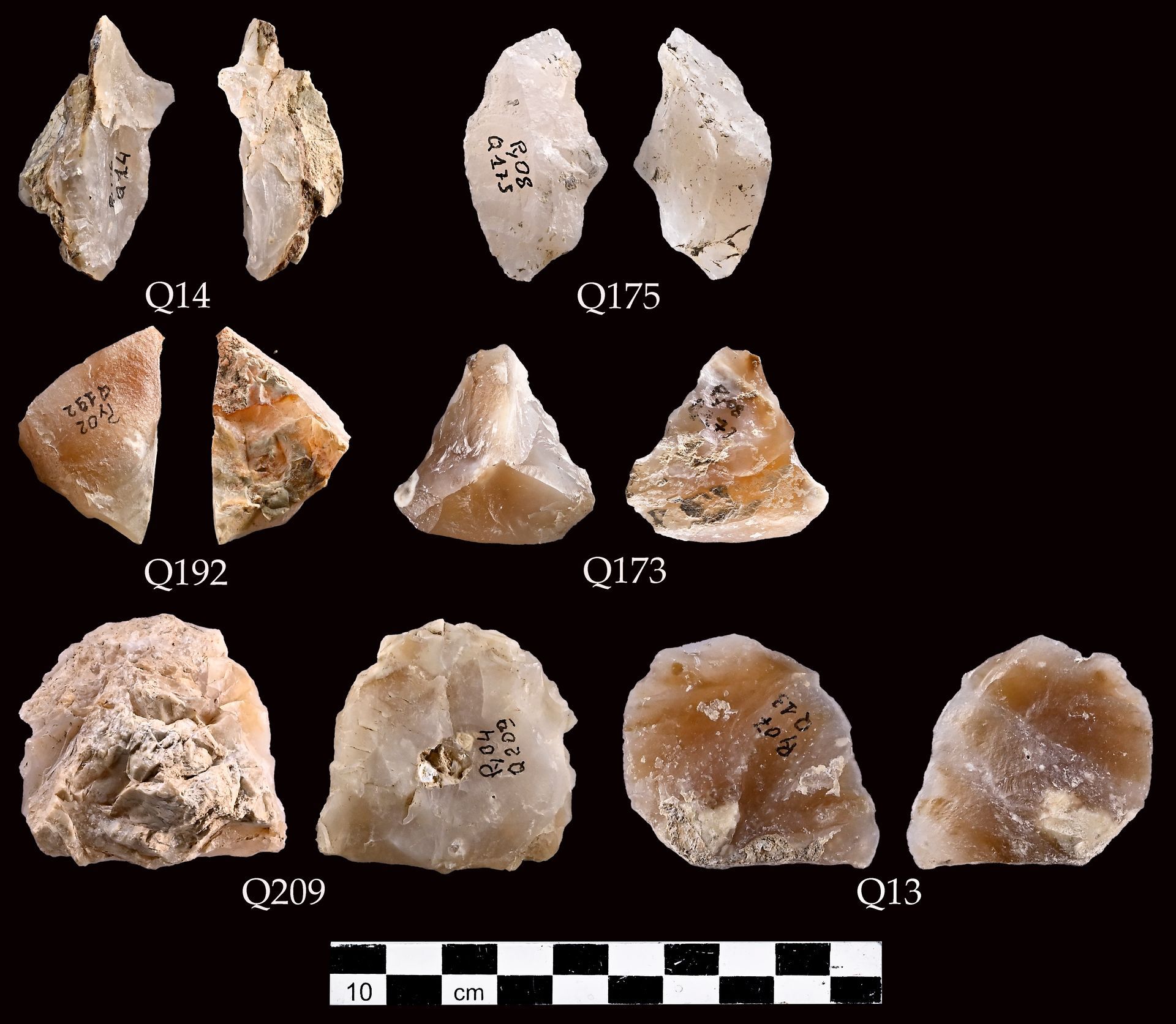 Quartz Levallois. Regarding the use of quartz as a material for the manufacture of sharp tools, since flint is the primary rock used at Levantine sites, while quartz is absent, we hypothesised that at Pyrgos/Mavroraki, the use and knowledge acquired in the processing of spheroids influenced the creation of smaller tools up to the Middle Palaeolithic, including the Levallois industry. The production of quartz tools is, in fact, part of a distinguishable complex that highlights a systematic and deliberate flaking strategy that continues uninterrupted from the Acheulo-Yabrudian period to the Levallois industry.